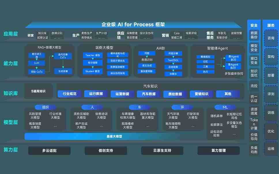 端到端的一站式AI工作空间深度融合了从企业战略规划到日常经营的全流程业务板块,,定向解决车企内部领域多、、部门多、、、、链条长、、场景碎片化等难题,,,支持车企快速构建以AI为核心的生产力写作体系,,实现任务执行与AI能力的无缝集成与交互